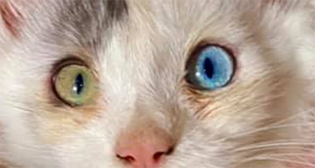 Hos helhvite og hvitflekk katter er det velkjent at det er mulig å få katter med to eller ett blått øye. Denne fenotypen er direkte knyttet til distribuering av pigmenter, så jo mer hvitt – desto større sannsynlighet for å få katter med blå øyne. Dette er raseuavhengig, og blå øyner er vanlig i de fleste raser med en viss mengde hvitt.