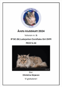 3. IP SC (N) Ladejarlen Cornflake Girl DVM, MCO fs 22 – Eier: Christine Skjæran